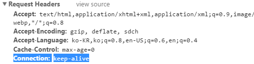 - keep-alive time out 내 클라이언트가 재요청하면 새로운 연결이 아닌 연결된 것을 이용함