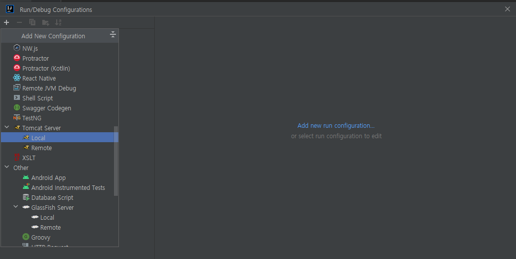 더하기 누르시고 조금 스크롤하시면 Tomcat Local 이 있습니다.