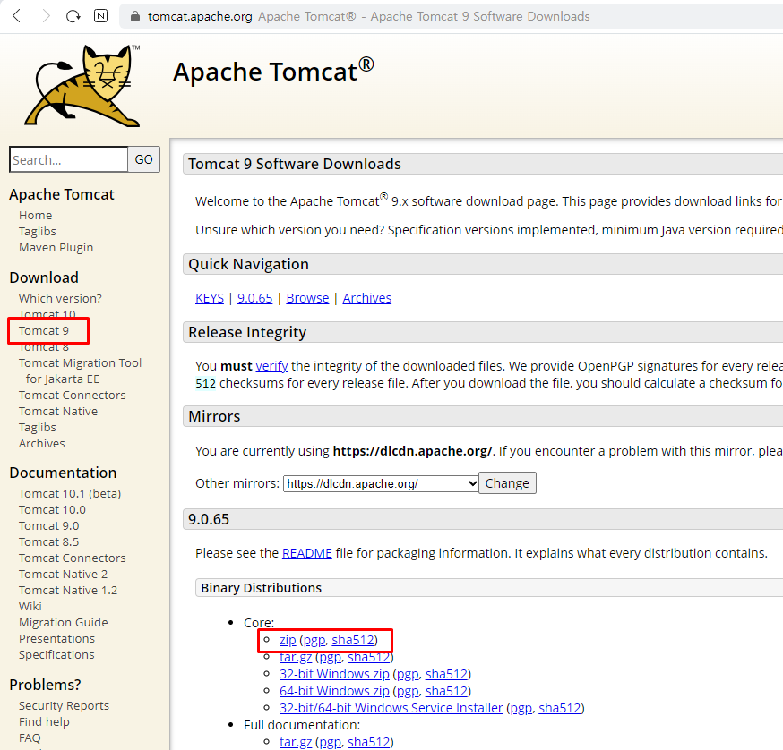 1. Tomcat 9 다운로드