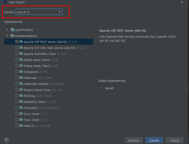Java EE 8 선택하시고 Create !!!!!!!!!!!!!!!